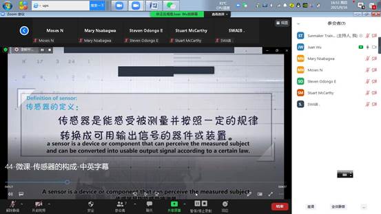 近日,随着《物联网工程导论》《数据网组建与维护》2门课程(在线)授课完成,中乌鲁班工坊物联网专业群团队培训班第一学期圆满结束。上月,首届中乌鲁班工坊开学典礼在公司举行,标志着物联网专业群历时两年打造的中外合作办学项目成功落地。该项目由重庆电子工程职业公司、乌干达麦克雷雷大学从2019年签约合作,在全球疫情发生后,于2020年3月,由公司物联网应用技术专业群与乌干达麦克雷雷大学,就建设麦大物联网专业所涉及的专业课程简介、双方现有课程资源的了解、对方提供的教学实训环境等方面,经过多次线上线下会议协商研讨,拟定专业标准、课程标准等。