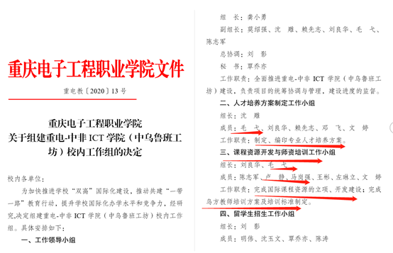 6.2020年6月29日 发文《重电教〔2020〕13号-关于组建重电-中非ICT公司(中乌鲁班工坊)校内工作组的决定》