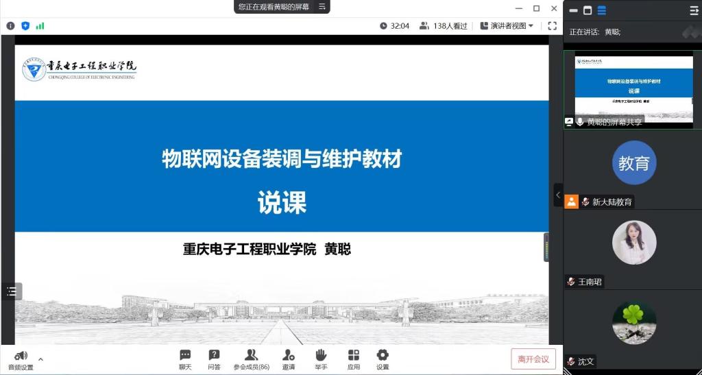 新大陆教育创新研究院的资深专家沈文也对产教融合背景下新大陆特色教材开发的探索与实践进行了分享。然后由公司一线教师分别对《物联网工程设计与管理》、《物联网设备装调与维护》以及《物联网系统部署与运维》三本教材进行了详细的课程说明。