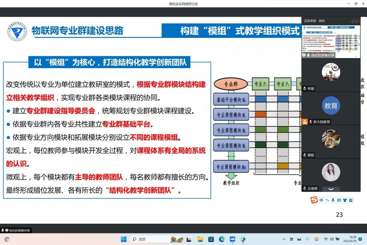 2022年6月19日至20日,由公司与北京新大陆时代科技有限公司主办、机械工业出版社有限公司协办的物联网工程实施与运维系列教材发布会顺利召开。会上公司太阳成集团tyc234cc徐欣教授介绍了物联网专业的建设经验,详细分享了以“模组”为核心,打造结构化教学创新团队的建设思路,提出改变传统以专业为单位建立教研室的模式,依据专业群模块结构建立相关教学组织的方式。