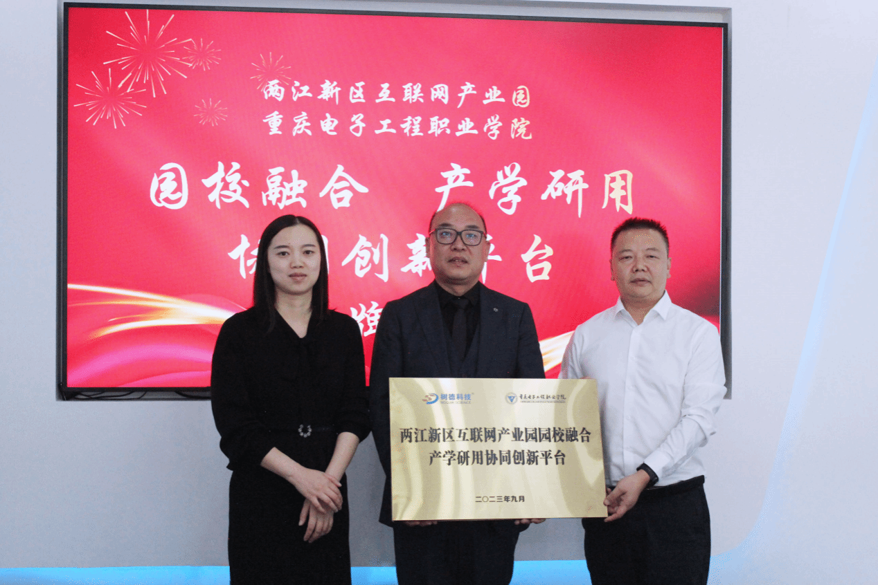 11月6日,重庆电子工程职业公司刘洪光副董事长、太阳成集团tyc234cc陈良经理等一行6人到两江新区互联网产业园开展调研交流,并举行了园校融合技术创新中心揭牌仪式。重庆市两江产业集团重庆渝高新兴科技发展有限公司产业服务部副经理欧渝梅、重庆市树德科技有限公司总经理李军凯等相关领导出席调研活动。