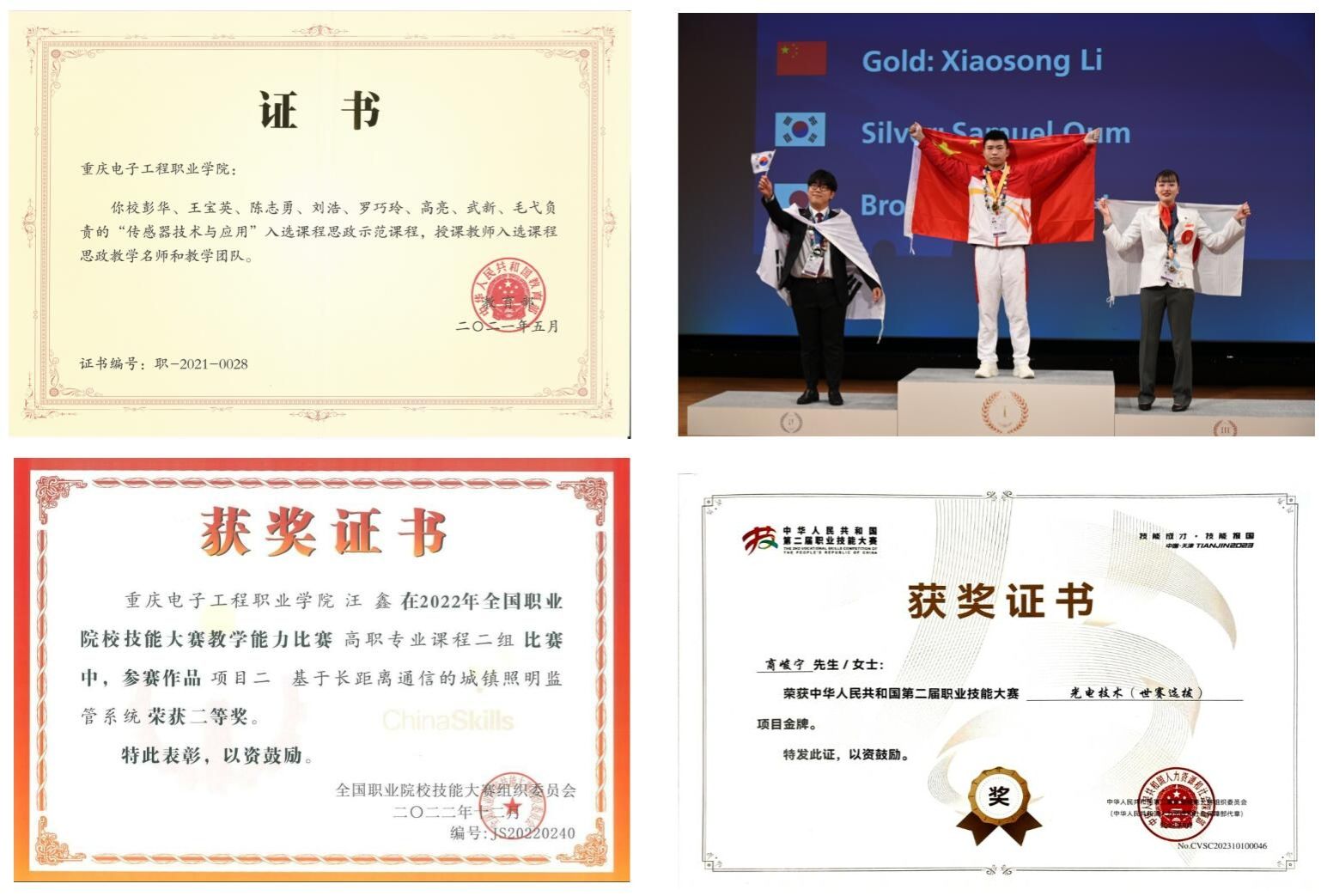 世界技能大赛光电技术项目专家1人、教练组组长1人、金牌获得者1人;