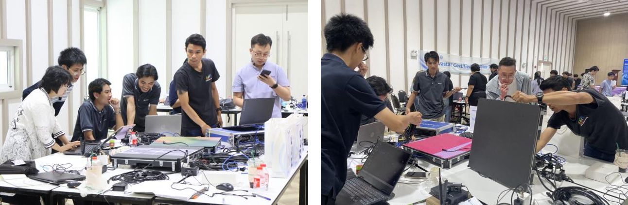 本次培训主要围绕诺瓦星云H系列拼接器及TU系列多媒体发送卡等设备开发了中英双语初级认证工程师培训课程,涉及LED显示屏拼接设置、控制器屏幕配置、设备间备份设置及多画面传输方案设计等培训内容。