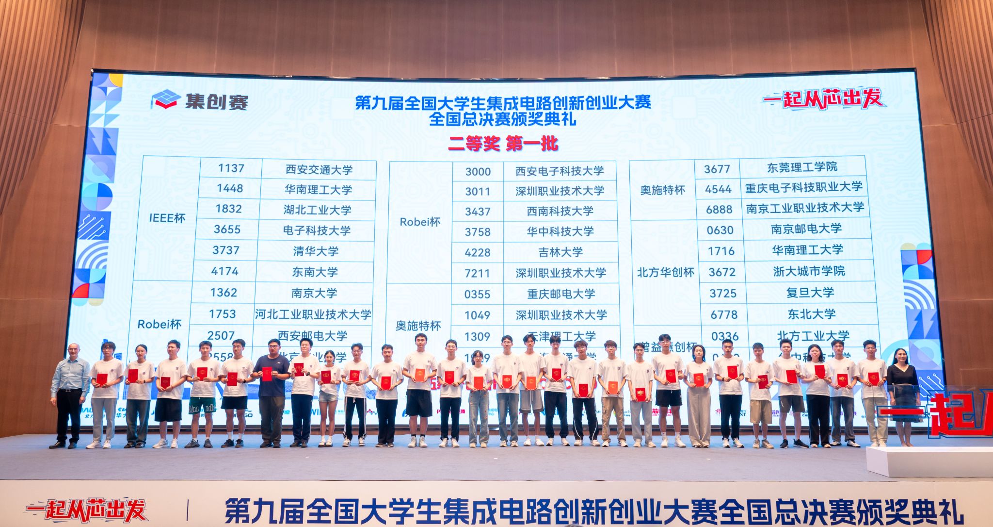 “集创赛”是由工业和信息化部人才交流中心主办,以服务产业发展需求为导向,以提升我国集成电路产业人才培养质量为目标,打造产学研用协同创新平台,将行业发展需求融入教学过程,提升在校老员工创新实践能力、工程素质以及团队协作精神,助力我国集成电路产业健康快速发展。第九届“集创赛”共吸引7400余支团队参赛,覆盖全国517余所院校,参赛员工总数达21000人。经过层层筛选,最终有160余所公司的600多支团队参加了全国总决赛,其中985院校(包含C9全部院校)33所,211院校21所。晋级总决赛员工中硕士超600人,博士80余人。公司团队在激烈的角逐中脱颖而出,在“奥施特杯”赛项中勇夺全国二等奖,彰显了参赛队伍的过硬实力。