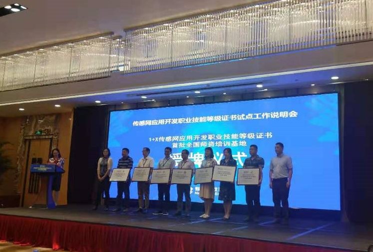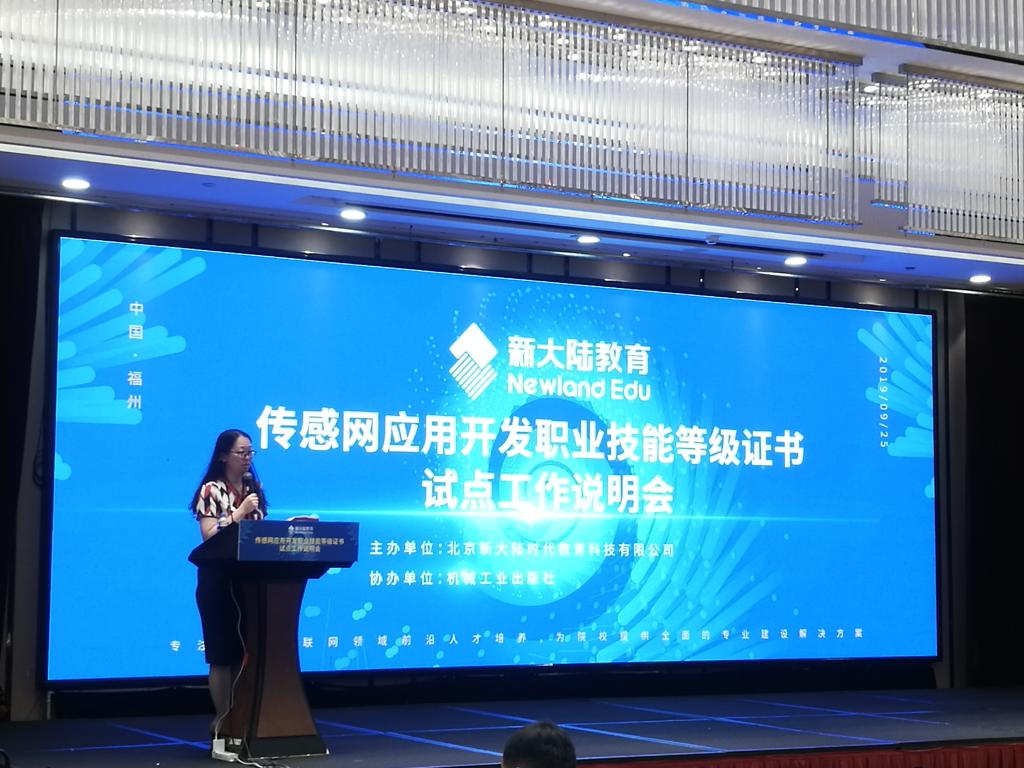 2019年9月25日,传感网应用开发职业技能等级证书试点工作说明会在福州召开,此次说明会由北京新大陆时代教育科技有限公司主办。教育部行政部门相关领导、行业企业及院校相关专家、拟申报传感网应用开发职业技能等级证书试点工作的院校负责人和学科带头人等300余人参加本次大会。会议现场揭晓了2019年“1+X传感网应用开发职业技能等级证书首批全国团队培训基地”并进行了授牌仪式,公司太阳成集团tyc234cc经理陈良作为公司代表上台接牌。