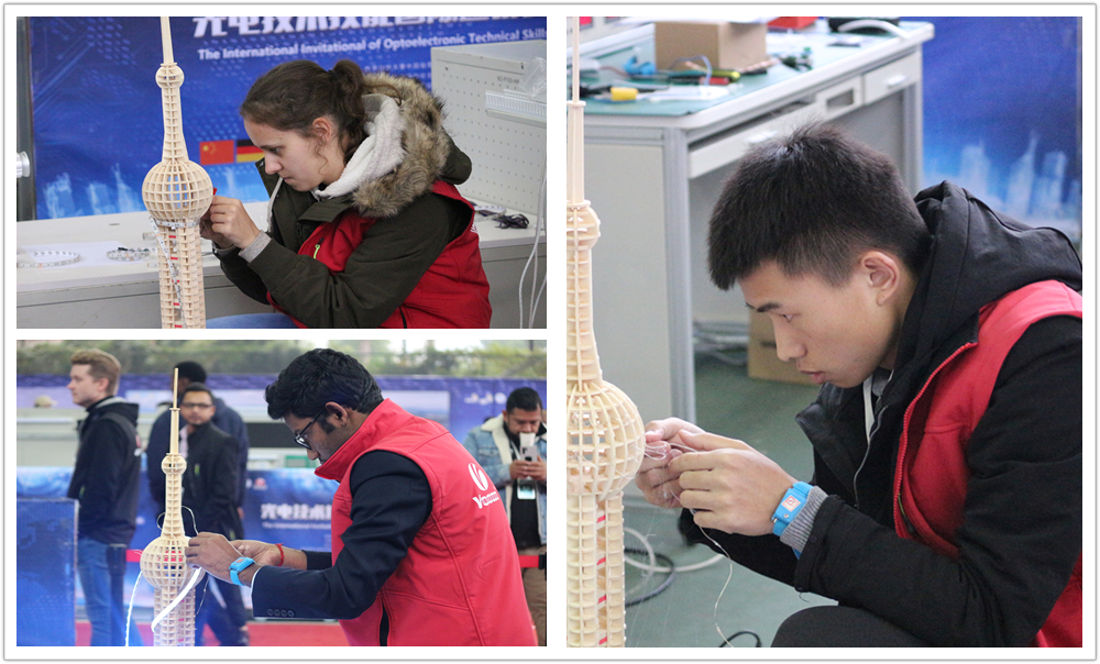 本次赛事共设置光电应用终端制造、LED全彩大屏组装与信息处理、LED照明灯饰产品制作与调试、智能照明控制系统组装与调试、照明工程安装实施与调试5个模块,完全按照世赛规则实施。