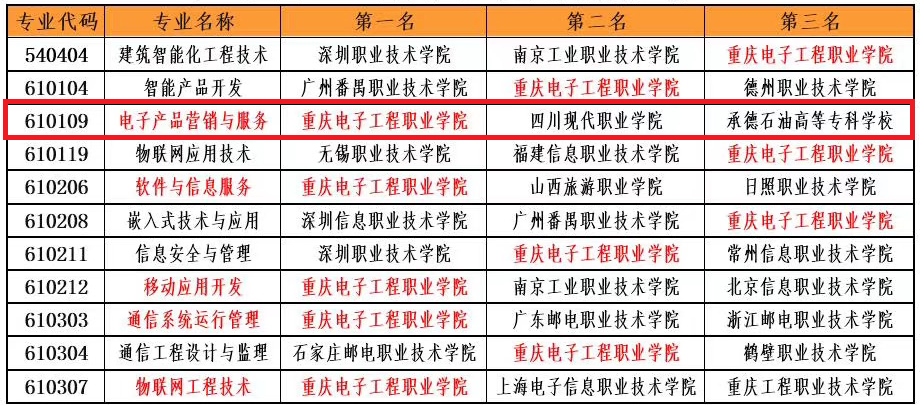 2020年5月6日,金平果首发的2020年中国高职高专院校分专业竞争力排行榜中,公司电子产品营销与服务专业全国排名第一。