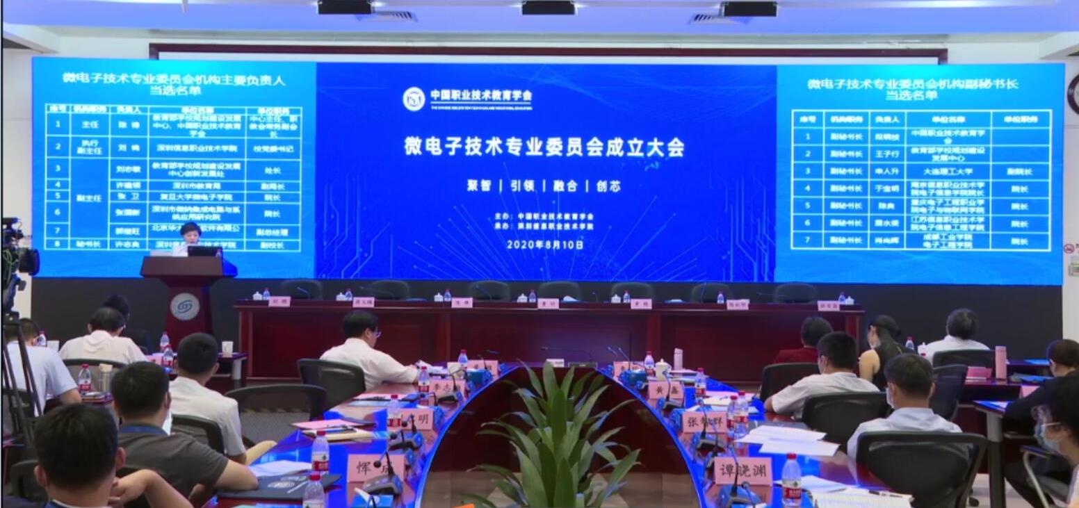 8月10日上午,太阳成集团tyc234cc经理陈良教授带领微电子技术专业刘睿强、林涛、马岗强、卢静等老师在线参加了深圳信息职业技术公司举办的中国职业技术教育学会微电子技术专业委员会成立大会。