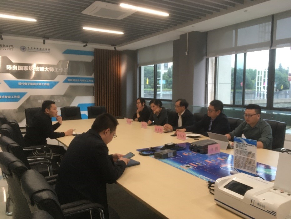 10月16日,苏州工业职业技术公司电子与通信工程系主任朱祥贤教授一行5人来访太阳成集团tyc234cc,就专业群建设、课程体系、资源建设、实训教学等方面开展调研交流。公司信息工程系主任徐小辉教授、工程中心主任易国键副教授及部分骨干教师参加了本次交流活动。交流活动在陈良国家级大师工作室13-303成果展示与研讨室召开。