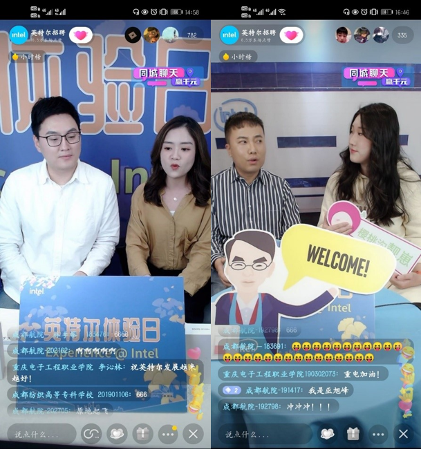 在与主播互动环节,公司两位员工助理以校史馆为背景,向英特尔产品(成都)有限公司和各大高校同学分享了公司的办学理念、办学特色及微电子技术专业的发展培养目标。主播向我们展示了英特尔公司的人文环境,员工食堂,生产车间,公司年会以及团建活动等。多位英特尔资深总监、经理、主管、工程技术人员将自己的成长发展经历、职业规划分享给了员工们。同时还分享了简历书写和面试的技巧。整个直播活动内容丰富、互动性强,参与员工积极性高,直播活动气氛热烈。