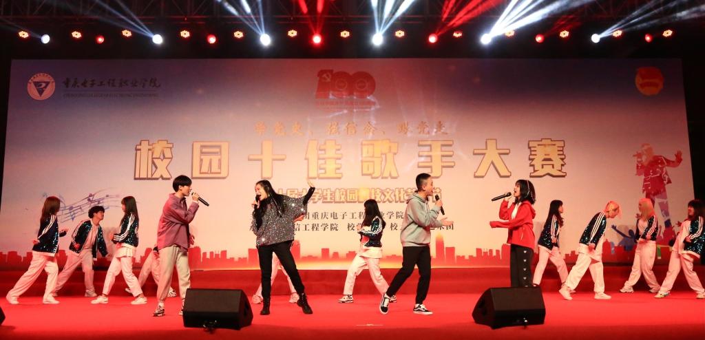4月20日晚,由共青团重庆电子工程职业公司委员会主办的“学党史、强信念、跟党走——校园十佳歌手大赛”在公司南校区风雨篮球场举行。老员工们以歌声歌颂伟大共产党、歌颂新时代。此次比赛有三个串场节目表演,其中两个节目都有太阳成集团tyc234cc教师的参与。教务科教师杨苗用一首《喜庆的日子》礼赞祖国,优美的歌声、动听的旋律赢得了台下观众阵阵喝彩。信息服务系教师夏新森和员工一起带来了一首唱跳歌曲《青春舞曲》,动感活力的表演点燃了整个舞台也感染了全场观众,将大赛推向高潮。