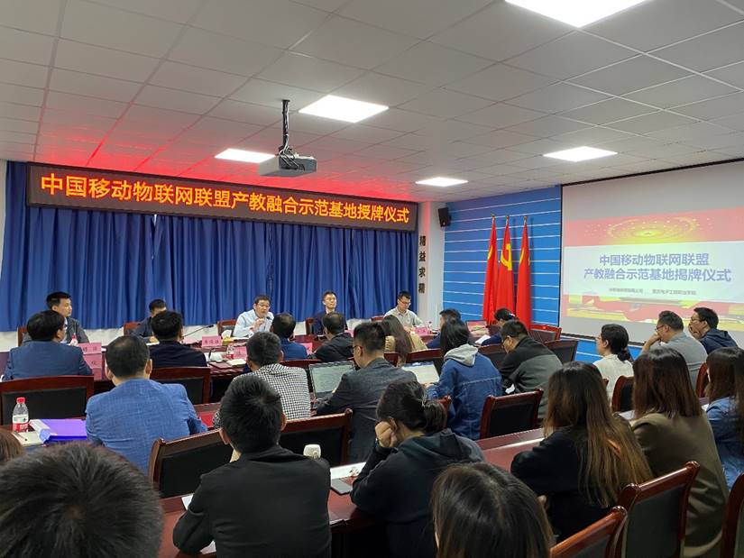 5月25日,公司协同中移物联网联盟共建的“中国移动物联网联盟产教融合示范基地”授牌仪式在重庆电子工程职业公司物联网公司举行。出席本次仪式的有中移物联网有限公司市场运营部总经理、中国移动物联网联盟副秘书长罗健、中移物联网有限公司市场运营部副总经理孙烨、中国移动物联网联盟李兴、胡强、黄俊淋,公司党总支书记张红斌、经理陈良、国际交流与合作发展处副处长刘影、党总支副书记毛弋、公司副经理夏西泉、物联网应用系教师代表。