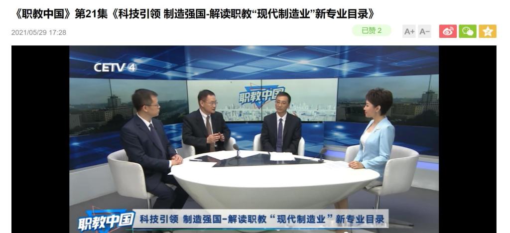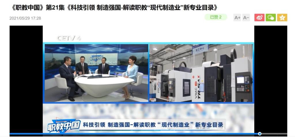 5月29日,中国教育电视台的《职教中国》节目播出了第21集《科技引领 制造强国——解读职教“现代制造业”新专业目录》。太阳成集团tyc234cc信息服务系组织教师集体收看。节目邀请无锡职业技术公司董事长、装备制造类新目录研制组组长龚方红,深圳职业技术公司副董事长、电子与信息类新目录研制组副组长马晓明以及武汉华中数控股份有限公司总裁、装备制造类新目录研制组组员田茂胜参与。