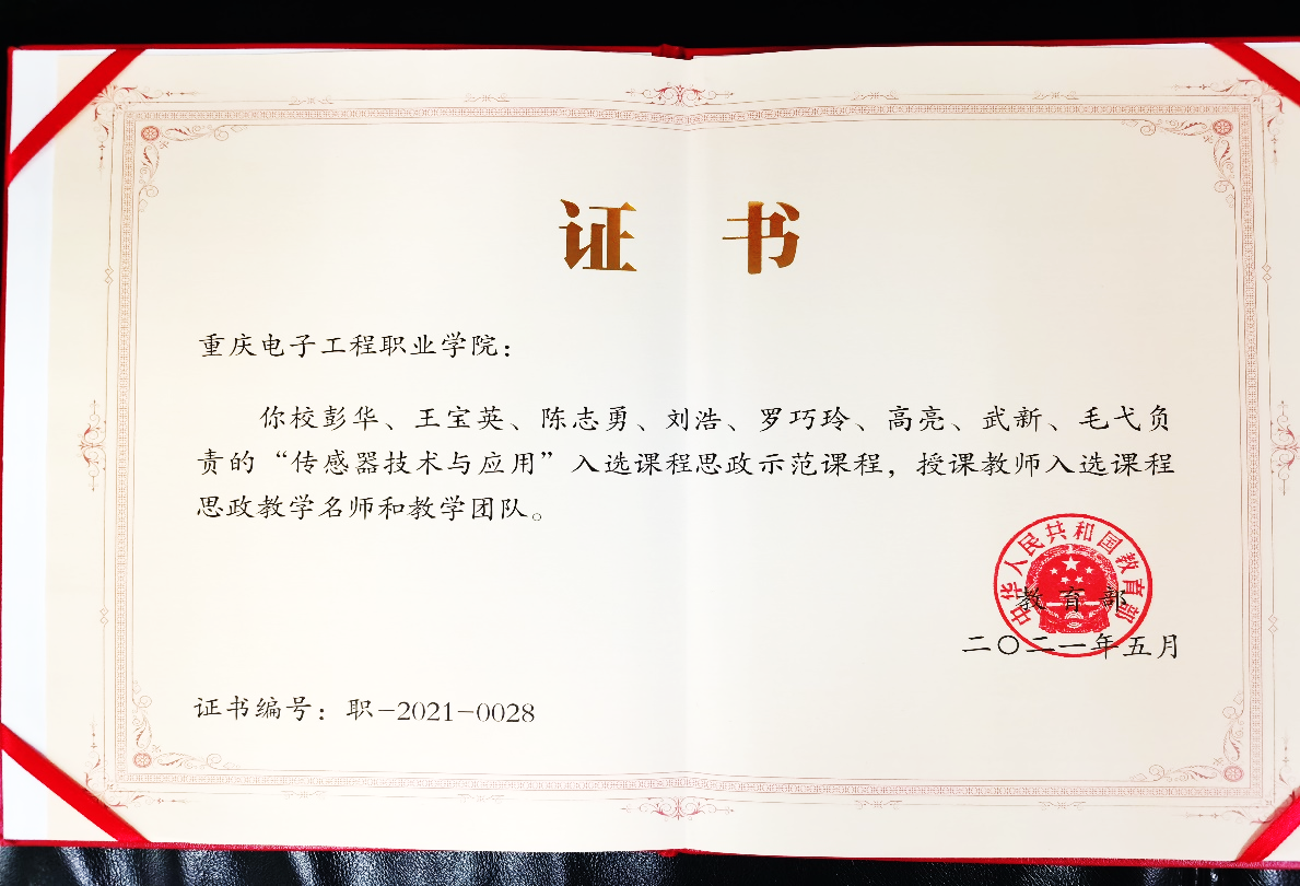 6月15日,公司《传感器技术与应用》课程入选课程思政示范课程,授课教师入选课程思政教学名师和教学团队。该荣誉称号是教育部首次对课程思政课程、教师和团队进行的认定。