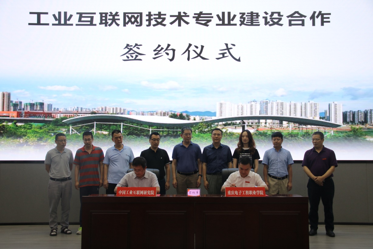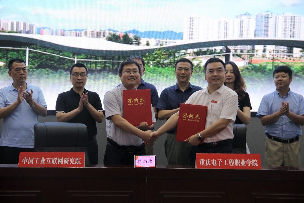 重庆电子工程职业公司与中国工业互联网研究院共建工业互联网技术专业合作协议签约仪式在此次启动仪式上举行。在重庆市经济和信息化委员会智能化处领导和工业互联网技术领域多位专家的见证下,中国工业互联网研究院标准化所培训技术负责人张玉良和公司聂强董事长共同签署合作协议。