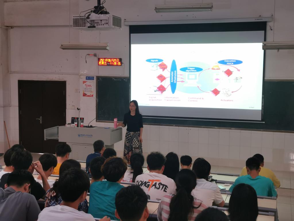 会后徐俊鸿经理及马光红工程师以“智能制造趋势及挑战”为题向微电子技术专业员工作了专题讲座。讲座以英特尔公司集成电路智能制造真实案例,向员工讲解了集成电路制造发展趋势,智能制造在集成电路制造中的应用等科技前沿知识;员工就感兴趣的技术内容与专家进行了交流和互动。