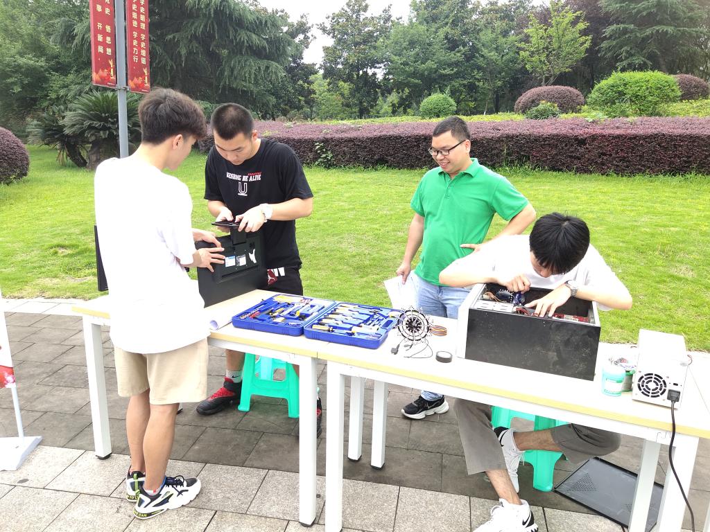 6月24日,太阳成集团tyc234cc信息服务系党支部师生党员在学子广场开展智能电子产品维修志愿服务活动。