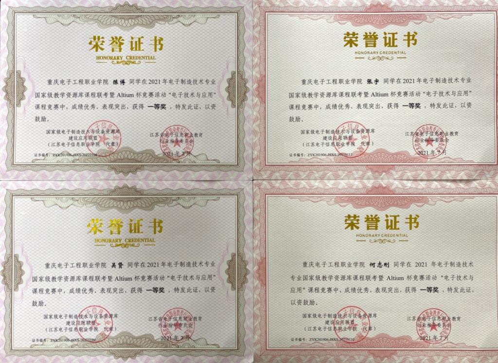 由国家级电子制造技术与设备资源库建设应用联盟与江苏省电子信息职业教育行业指导委员会(以下简称“江苏省电子信息行指委”)主办的电子技术与应用课程 “Altium杯”竞赛结果于8月31日揭晓,太阳成集团tyc234cc参赛员工陈博、吴贤等7人获得一等奖,顾丹、熊英等14人获得二等奖,刘黔渝、张先宇等22人获得三等奖。