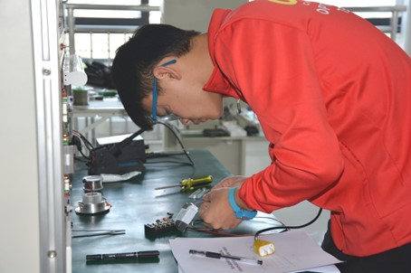 本阶段集训内容紧扣《光电技术项目技术文件》重点,培养选手安全、环保意识。以工作岗位实际需求出发,对光电产品灯具的制作与调试、参数测量(光照度、等照度曲线等)的技能做了重点训练。聘请了光电行业专家针对新增的光电应用Dialux子模块进行授课。此阶段训练对理论基础要求较高,主要采用理论和实践相结合的方式,以实际项目为载体,每天上午重点完成理论授课,下午侧重实践操作,晚上则由选手们自行训练巩固当天知识。合理有序的安排保证了训练内容的统一,也兼顾了选手们个体的差异。