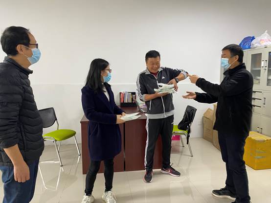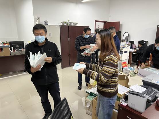 近日,我市出现本地确诊病例,疫情防控形势严峻。为保障疫情防控期间教职员工做好自我防护,11月3日上午,公司党总支书记张红斌教授,经理陈良教授带领党政科为全院教职工发放防疫物资。