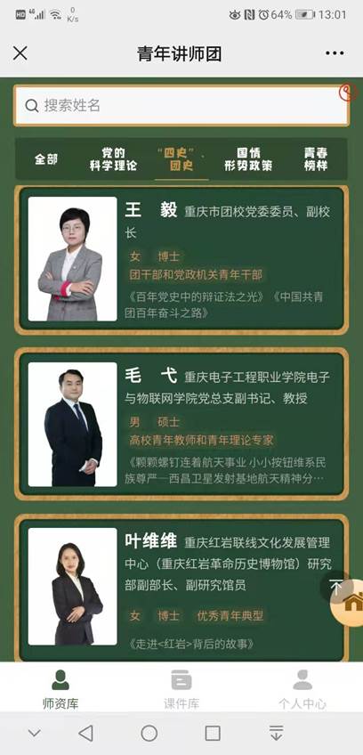 “重庆共青团”微信公众号中预约讲师授课