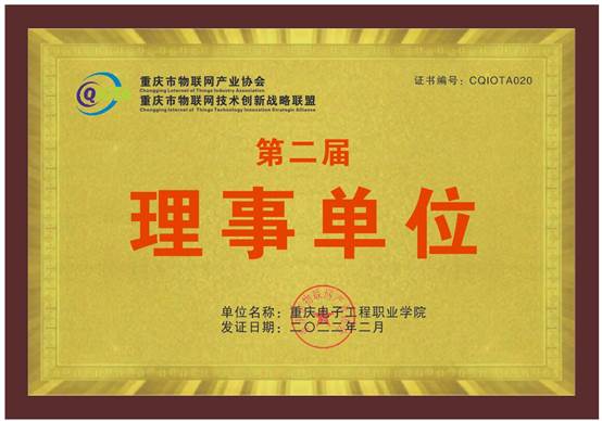 图1 公司当选为重庆市物联网产业协会第二届理事单位