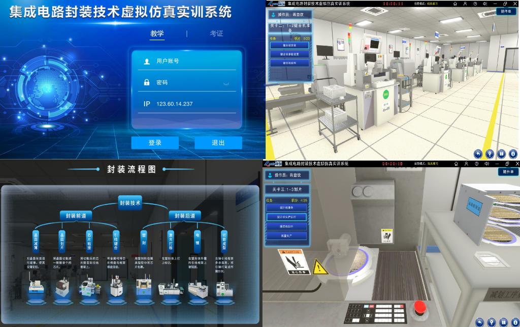 为克服疫情的影响,此次实操考核采用“集成电路封装技术虚拟仿真实训系统”进行。该虚拟仿真实训系统是公司与朗迅科技等共同开发的一套集教学、实训、考核为一体的虚拟仿真系统。采用虚拟仿真的形式进行考核,不仅满足了1+X证书考核和疫情防控的要求,而且其实践性较传统的方式更加全面、建设成本更低、教学成效更高。