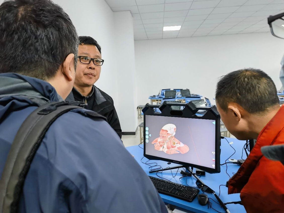 向朱清溢副经理一行还参观了集成电路专业群虚拟仿真实训基地,集成电路系主任马岗强介绍了国家级职业教育示范性虚拟仿真实训基地(培育)项目建设整体规划和建设情况。