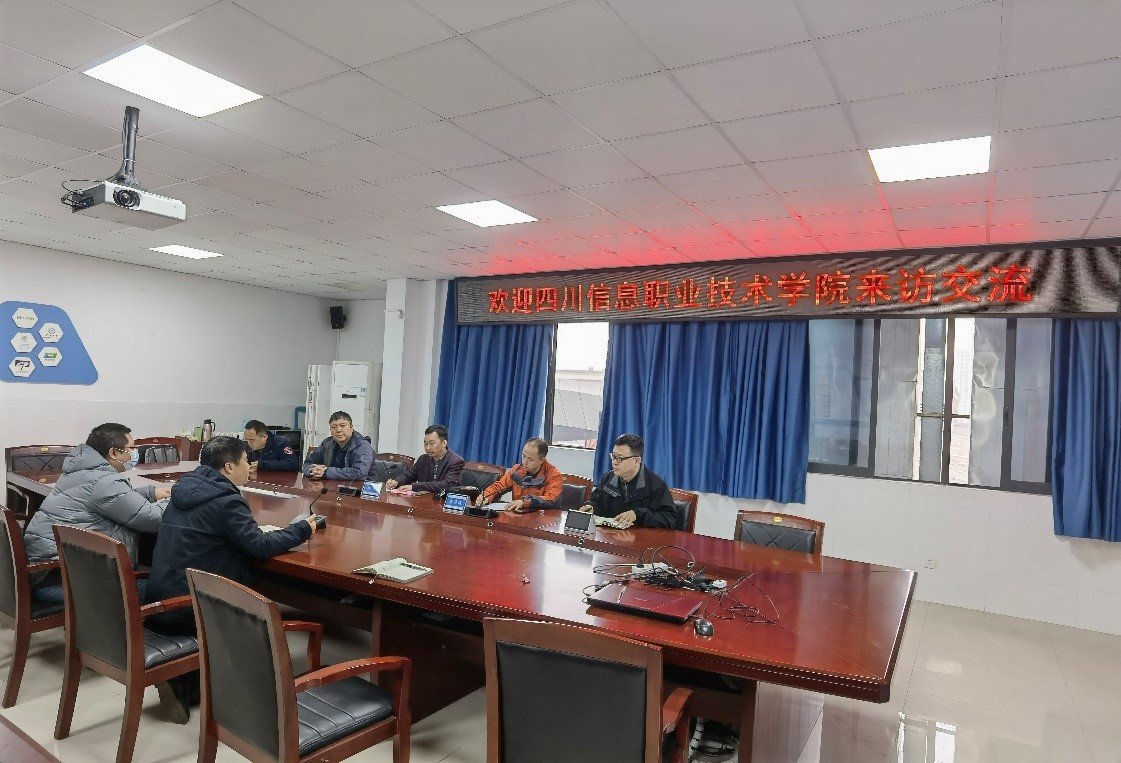 参观后双方进行了交流座谈,夏西泉副经理向来宾介绍了公司整体建设情况,双方针对公司绩效、人才培养、实训室建设、产教融合等方面进行了深入交流。