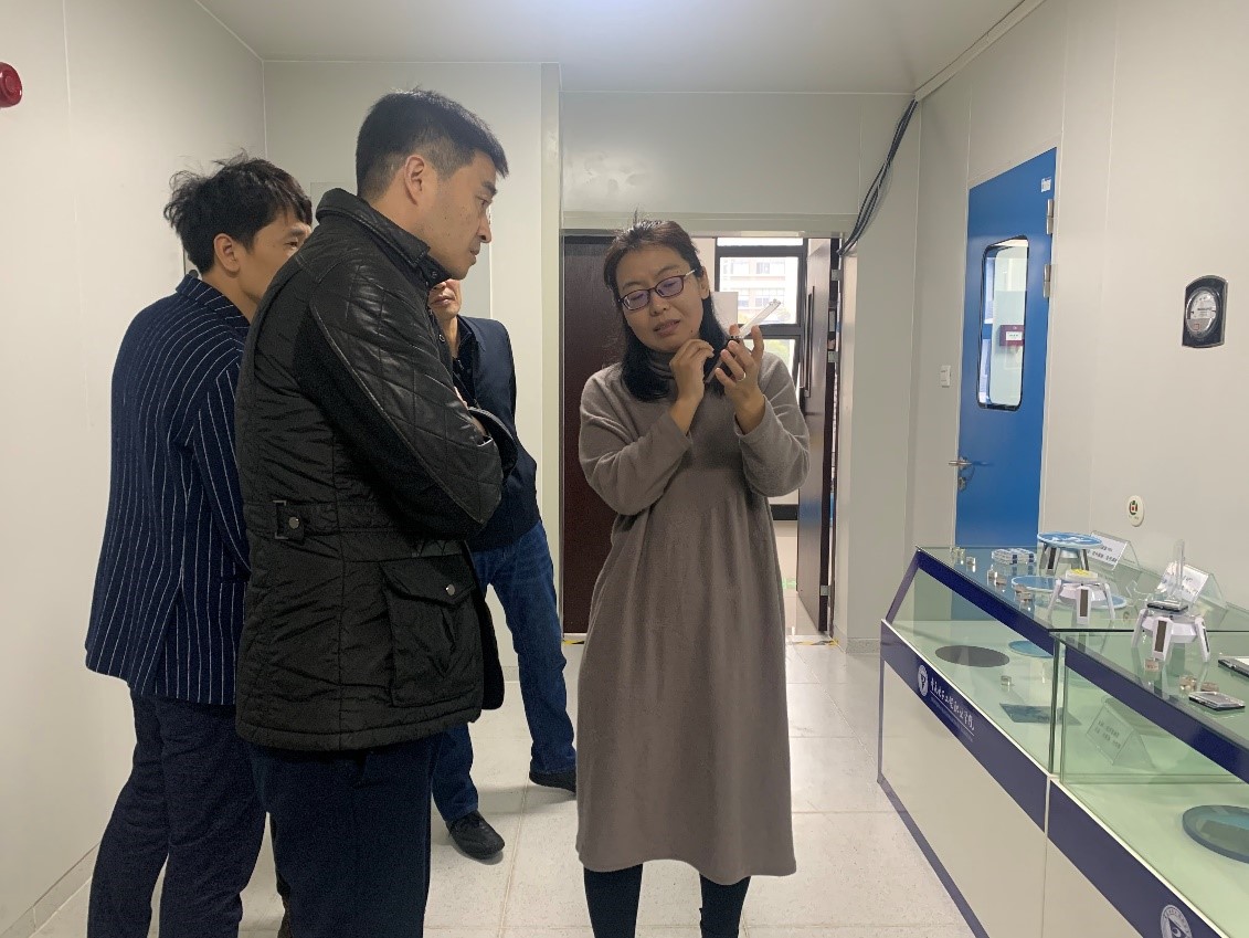 牛欣玥老师向来宾介绍了硅光中心硬件设施及人员配置情况,并展示了硅光中心在科技创新、人才培养、技能竞赛等方面的成果。卢老师介绍了硅光中心的集成电路工艺环境搭建条件和运维方式。卢老师表示,硅光中心在集成电路硅光领域的技术研发方面处于国内领先水平,与浙江光特科技有限公司建立了长期合作模式,共同研发的硅光芯片在国内同行业中颇具影响力和竞争力。李川经理参观了硅光中心的千级无尘室和实验设备,感受了双高专业群建设成果、现代职业教育的高标准、高要求。