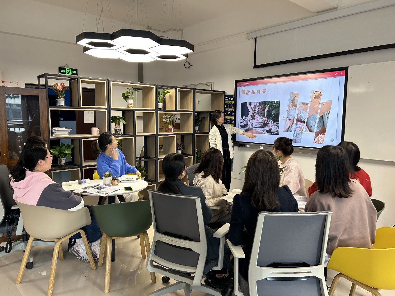 活动伊始,女职工们在公司图书阅览室开展了书籍阅读和读书分享活动,交流对所读书籍的体会,分享对艺术和美的感受。通过读书活动,全体老师在阅读中开阔视野、增长知识、陶冶情操、增进交流,为自我身心的和谐提供源源不竭的精神动力。随后大家跟随烘焙老师体验蛋糕和青团的制作,大家聚精会神地聆听烘焙老师的讲解,在老师的指导下,大家互相配合协作,完成了精美的蛋糕作品。