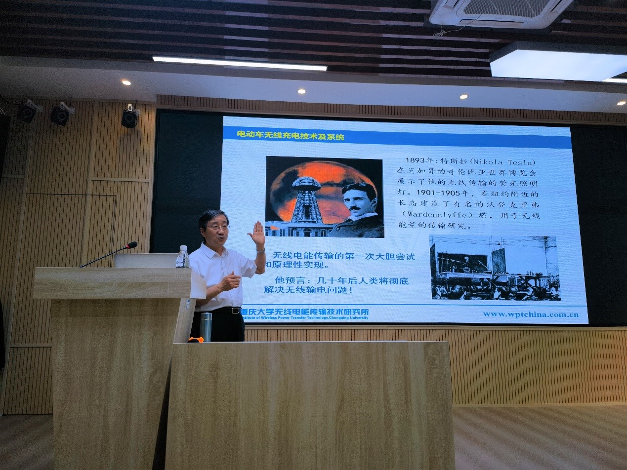 孙跃教授从智能无线充/供电技术原理、系统解决方案、合作研发、推广应用、未来技术发展等方面进行了系统阐述,并以智能交通领域的无线充/供电系统为例讲解了国际化项目合作开发及产业化模式,还介绍了本领域科研成果的国际领先优势及标准制订的成果经验。孙跃教授的讲解深入浅出,生动形象,通过分享自身对科技事业坚守与探索的经历,极大激发出大家的科研兴趣。