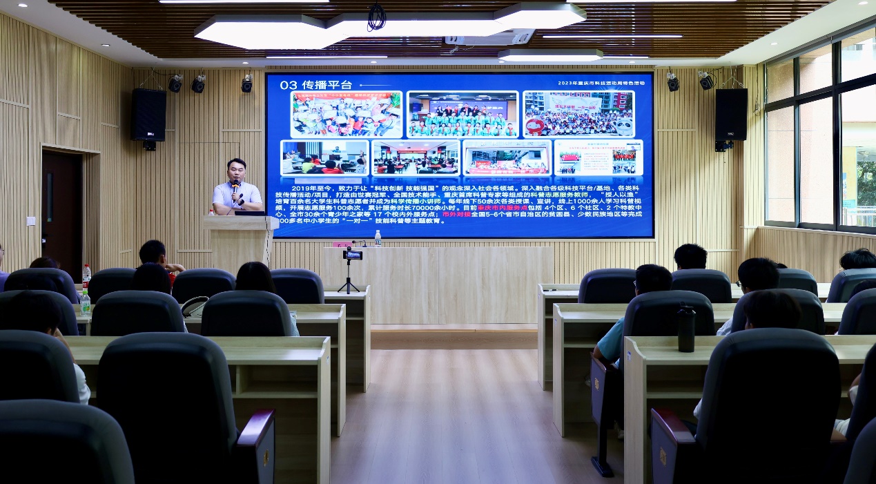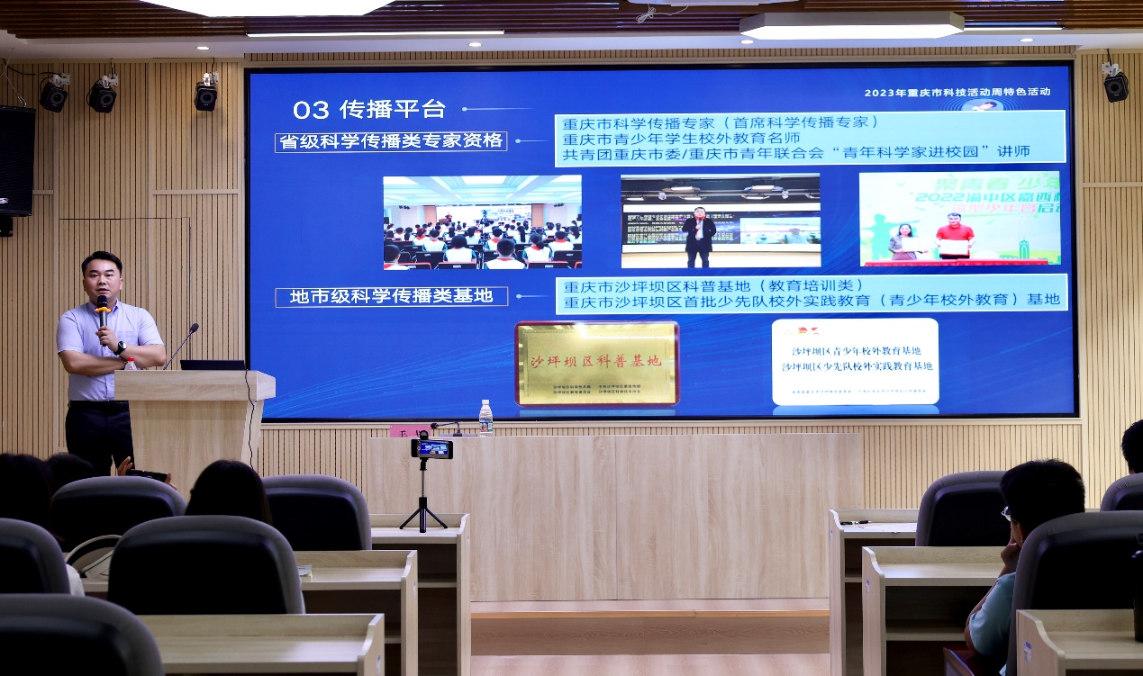 毛弋教授以今天成功发射的神舟十六号载人航天飞船中两名新人和新岗位为案例,结合自我职业经历“一个造火箭的人为什么要进行科学普及传播”为切入点引出本次讲座主题,分享了“颗颗螺钉连着航天事业、小小按钮维系民族尊严”的西昌航天精神。详细讲述了科学传播中高技术技能领域知识传播的重要性,只有提升了对从事高技术技能岗位领域的社会认可度,才能壮大行业队伍、人才资源,达到保障国家产业发展转型的重要前提,支撑科技自立自强和科技强国建设目标。毛弋教授致力于建设科学技术传播平台,他介绍了目前融合公司专业发展的各级科技平台的建设情况,致力于让“科技创新,技能强国”的观念深入社会各领域,相关团队目前在重庆市内服务点包括4个主城区、6个社区、2个特教中心、多个青少年之家等17个校内外服务点,每年对接全国5-6个省市自治区的贫困县、少数民族地区等完成300多名中小员工的“一对一”技能科普等主题教育,深入融合各级科技平台/基地、各类科技传播活动/项目。