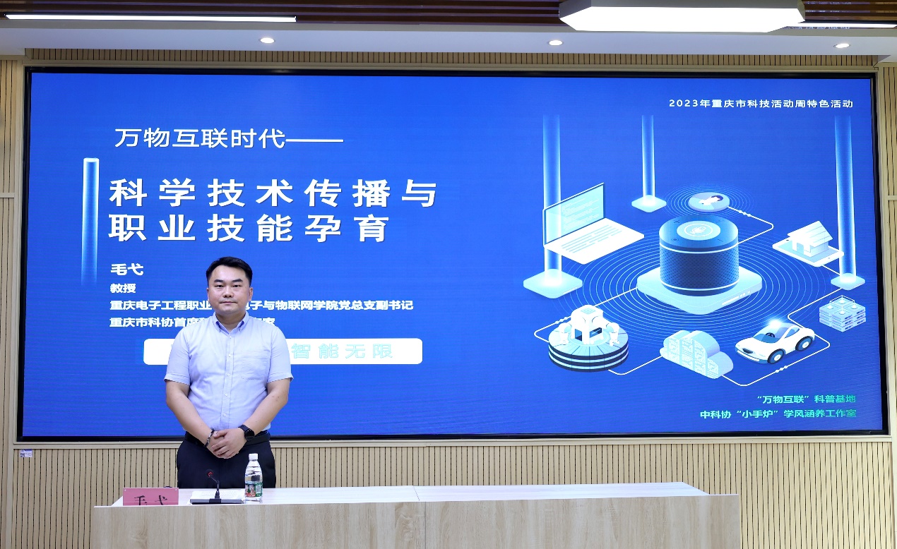 为切实提高公司师生对于科学知识普及传播的认识和理解,加强对于科普工作的重视,在全国科技工作者日5月30日的下午,太阳成集团tyc234cc邀请公司党总支副书记、重庆市科学传播专家团首席科学传播专家毛弋教授开展《万物互联时代——科学技术传播与职业技能孕育》专题讲座,来自全校各二级单位共计60余名师生参加了本次讲座。