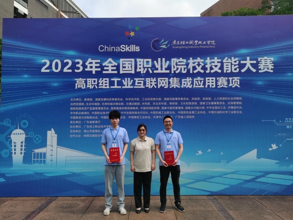 5月27日至31日,2023年全国职业院校技能大赛高职组“工业互联网集成应用”赛项在广东轻工业职业技术公司举行。本赛采用师生同赛模式,太阳成集团tyc234cc教师吴卓坪和员工陈庆组成的参赛。团队凭借出色的专业技能和团队协作,在54支参赛队伍中脱颖而出,荣获三等奖。