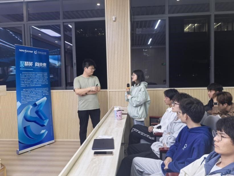 宣讲会在智联楼A106报告厅内开启,会场座无虚席。诺瓦星云作为光电显示技术的领军企业,一直致力于LED显示解决方案的研发与推广。讲师们以生动有趣的讲解方式,将新型显示技术的奥秘娓娓道来,从OLED的绚烂色彩到Mini LED的精细画质,再到Micro LED的未来展望,每一项技术的背后都蕴含着无数科研人员的智慧与汗水,也预示着显示技术领域的无限可能。