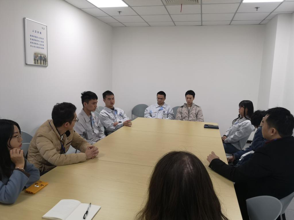 走访中,大家在企业人事部主管的陪同下,深入车间和服务场所参观,了解工作环境、岗位需求、福利待遇,参观研发中心、企业产品,探访公司往届就业员工并且开展了深入的座谈交流。