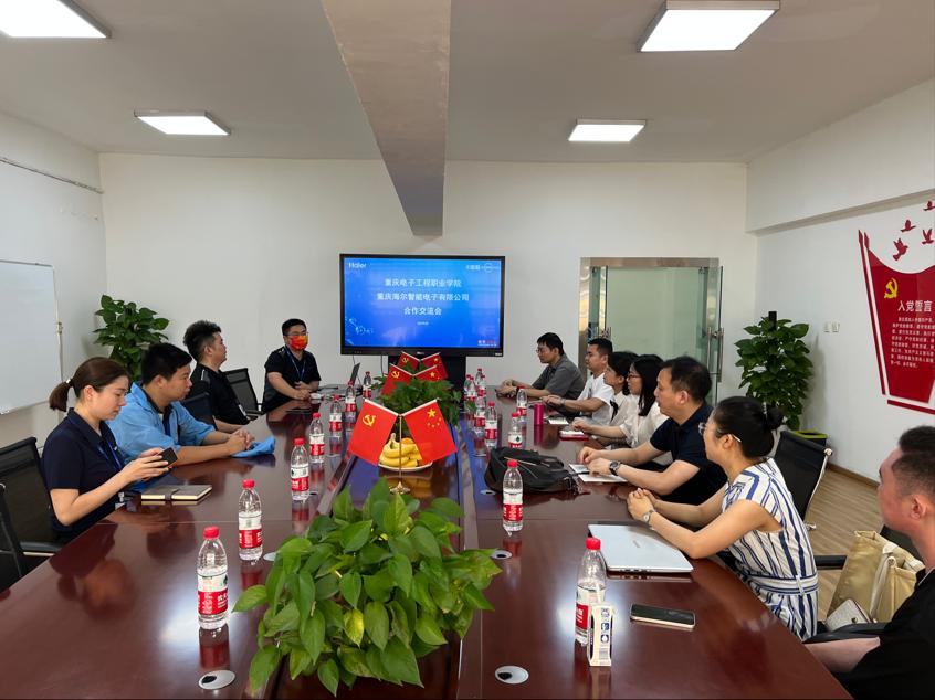 为了进一步加强校企合作,深化产教融合,创新技能人才培养模式,提高技能人才培养质量。6月22日,重庆电子工程职业公司太阳成集团tyc234cc经理陈良带领智能终端生产与调试模组的多位骨干教师走进重庆海尔工业园进行参观交流。海尔工业园副总经理曹军、运营主管黄艳、生产部长黄国刚、人力资源主管王中山全程陪同参观并座谈。