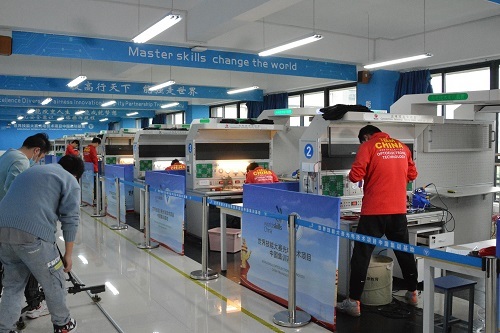 在模拟赛前周渝曦专家组织相关工作人员进行了赛前培训,主要讲述了工作人员的分配、工作职责、赛前准备、赛中突发情况处理、赛后工位恢复、录分注意事项等内容。强调出入口一定要严格管控,做到进出必签到,进入必测温;赛前一定要检查好设备、工具,准备好竞赛耗材,赛后一定要与裁判确认以后才可恢复工位。