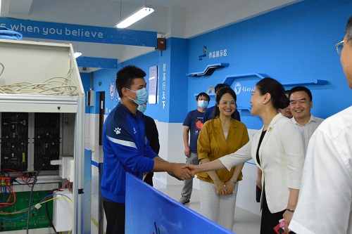 9月23日,重庆市人社局党组成员、副局长苏静和重庆市经信委党组成员、副主任罗莉一行莅临公司世赛光电技术项目中国集训基地,慰问正在全力备战世界技能大赛2022年光电技术项目特别赛(以下简称“世赛特别赛”)的专家、教练和选手团队。