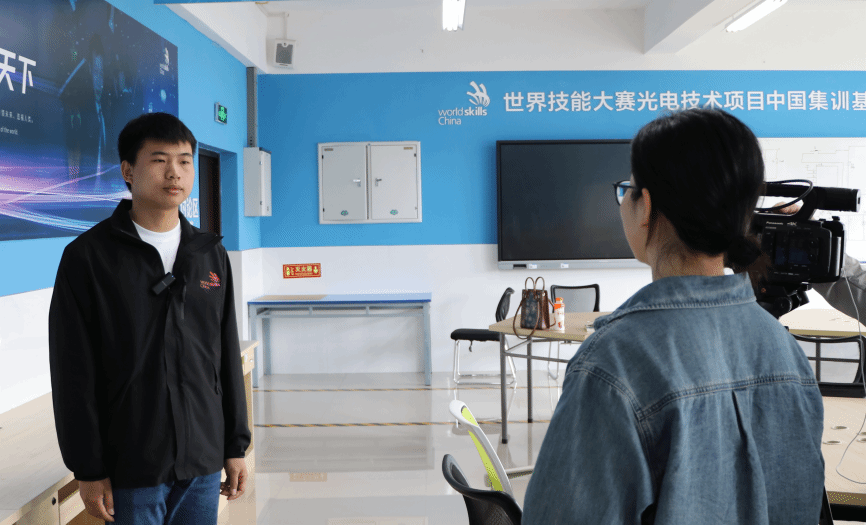 周渝曦作为赛项技术顾问,对光电技术项目进行了介绍:“光电技术项目是光电技术工程/技术人员利用相关技术技能,满足光电产业链中‘产品制造-应用实施-维护优化’的岗位需求,以达到人们对智能化节能光环境需求的技能竞赛。”同时周教授就赛项筹备、选手遴选等问题,向记者一一进行解答。