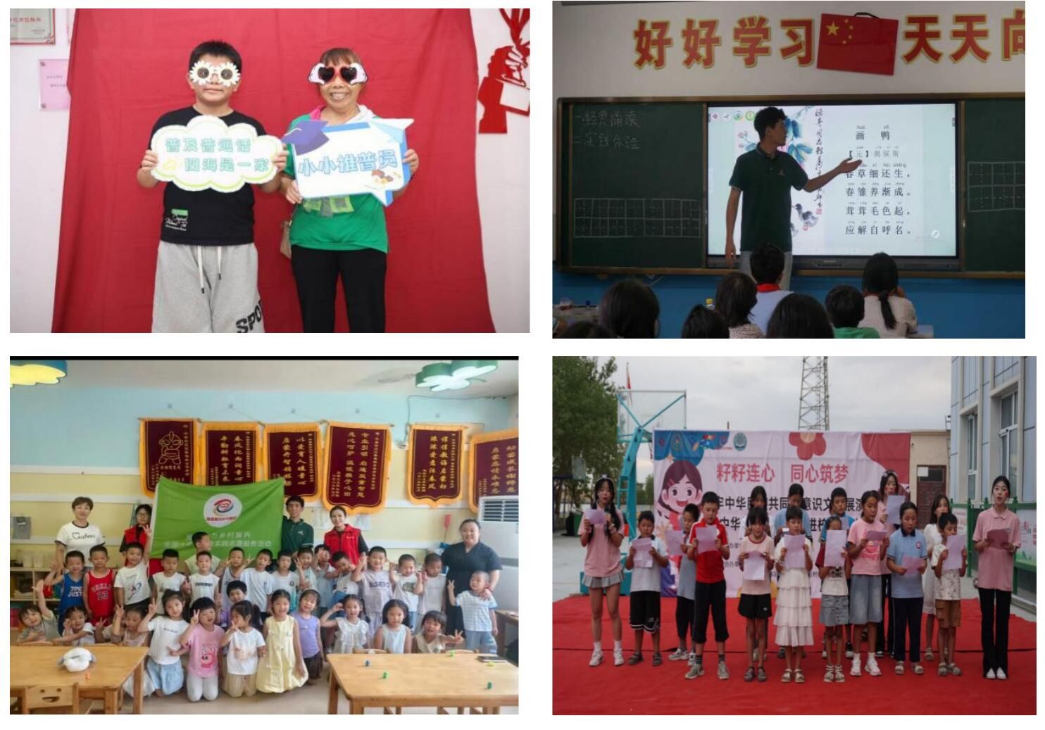 筑牢推普阵地,深化长效推广 实践团队与重庆市荣昌区、新疆托克逊等地建实践基地;搭线上学习平台、开发特色课件,联动支教平台扩资源覆盖,让推普从短期服务变成长期扎根的常态行动。